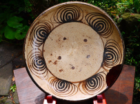 江戸後期の古い瀬戸 馬の目皿です。 径 34cm 口縁の欠けを梨地で補修しています。(約9.8cm) 口縁に小さなホツが多々見られます。 ニュウなどはありません。 在庫なし