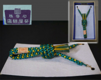 男物 羽織紐 鮮やかなグリーンと金糸で編み込まれたとても華やかで粋な雰囲気です。