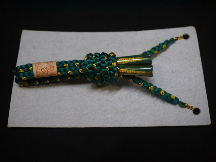 男物 羽織紐 グリーンと金糸 粋で華やか 心斎橋葵屋 未使用保管品 n-146