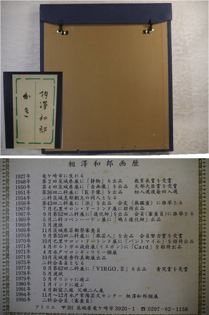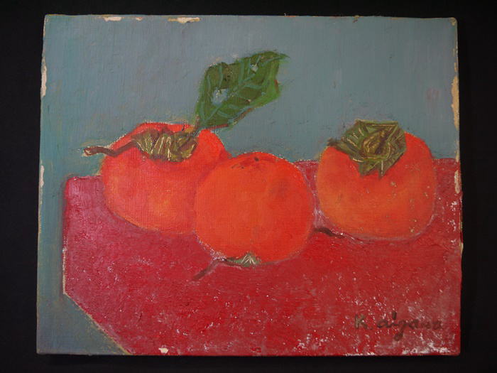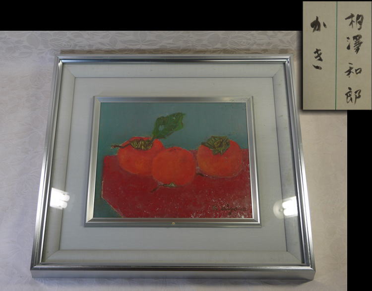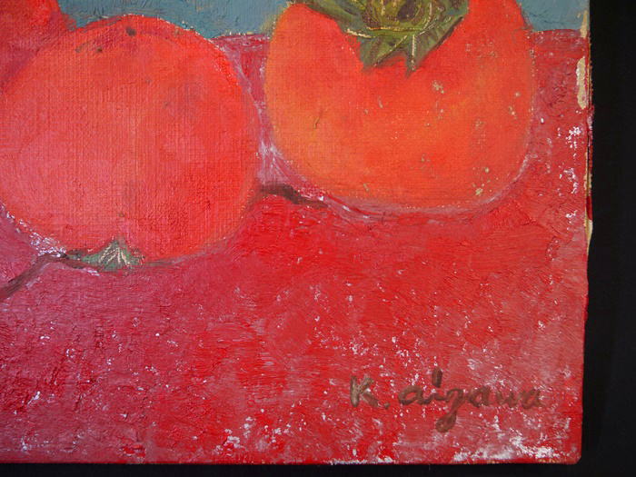 相澤和郎 「かき」 油彩 F3号 タトウ箱入 黄布付