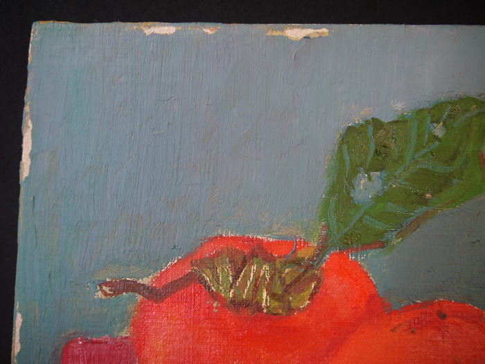 絵具の剥離多々有り 額に入れて飾っている際にはさほど判りませんが特に縁に多数見られます。