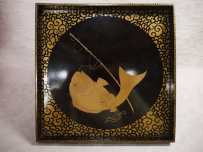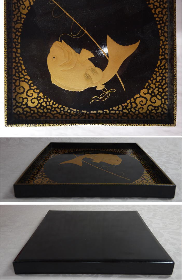 古い木製金蒔絵の角盆です。