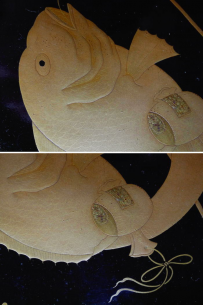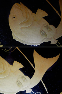十日戎に相応しい鯛釣りの図、鱗や歯も繊細なラインで描かれたとても立派な鯛です。