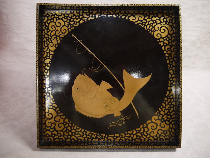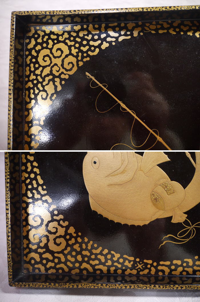 時代 角盆 十日戎 鯛釣り 打ち出の小槌 商売繁盛 縁起物 21cm k-662