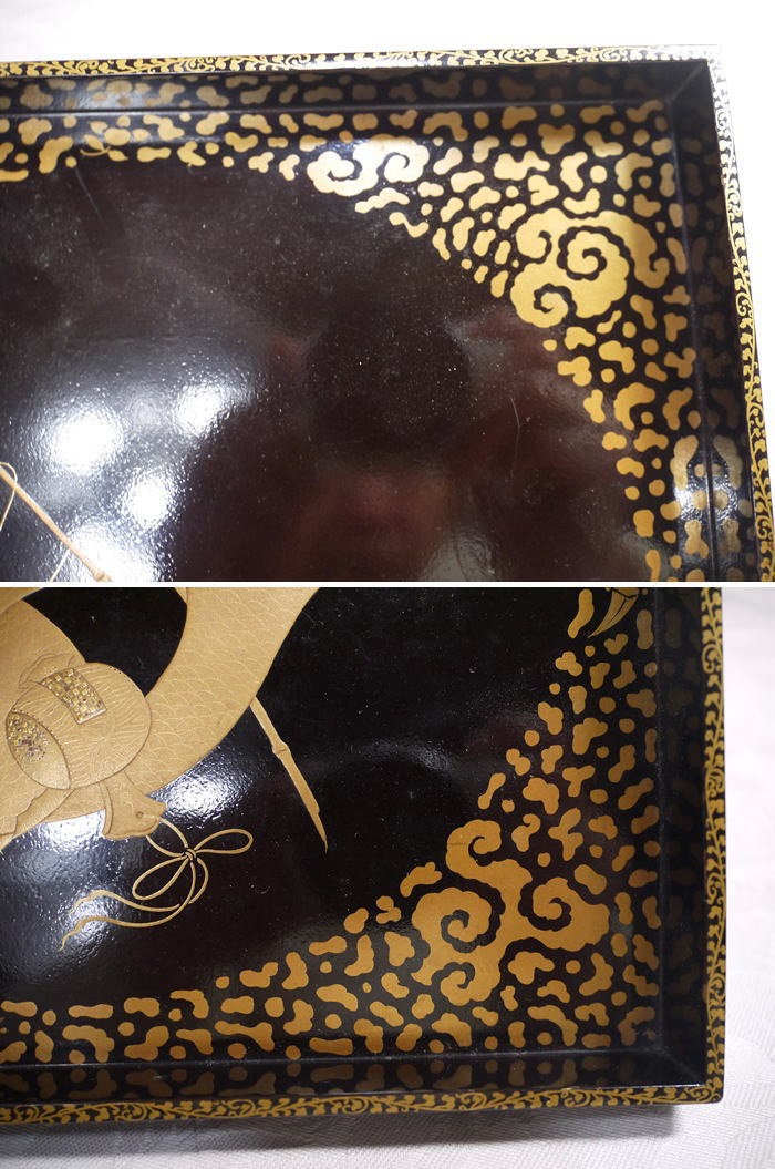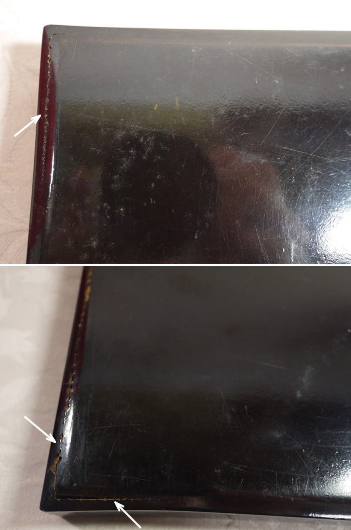 裏から見た時に角に漆のひび割れ、剥がれ等がありますが