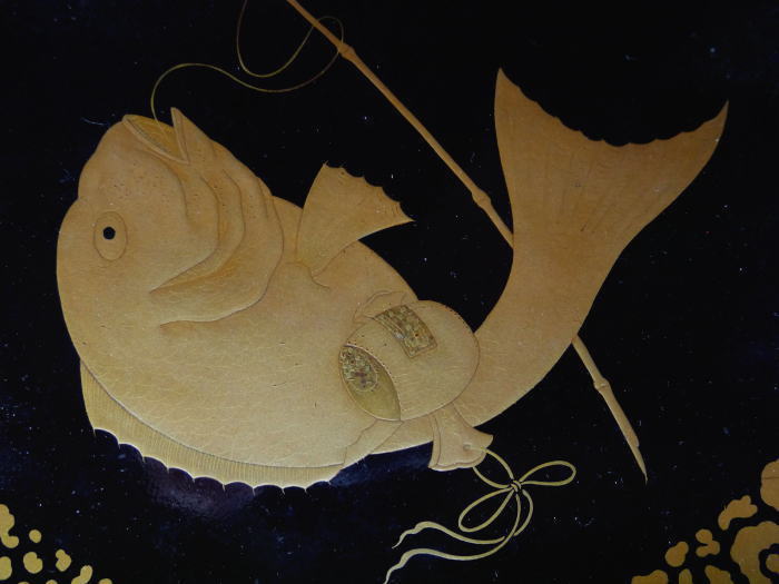 傍らには螺鈿細工がほどこされた打ち出の小槌が添えられ