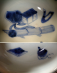 古伊万里染付盃洗 器物文 御簾・あぶみ・つづら等が描かれ 外側には遠山帆掛け舟文、脚は格子文が描かれています。 径12.5cm H9.2cmと小ぶりなサイズです。 口縁に3本のニュウが有りますがいずれも殆ど判らない程度のものです。 (4枚目の画像参照) ①約1cmのニュウ有り(裏にも通っています) ②約2.5cmのニュウ有り(裏には通っていません) ③約1cmのニュウ有り(裏には通っていません) 在庫なし