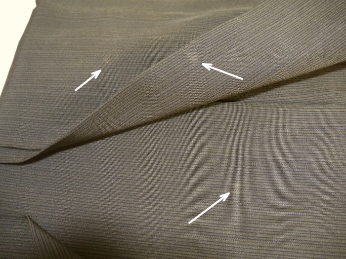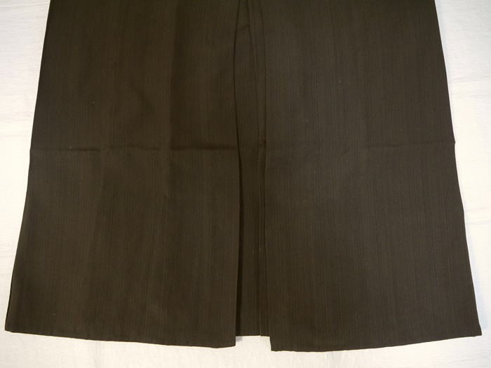 男物 正絹 馬乗り袴 濃い茶色 細かい縦縞文 中古保管品 紐下80cm 目立つような濃いシミではないと思いますがところどころ薄シミがあります。 気づいたものは画像にてupしておりますが見落としなどもありかもしれませんので ご了解の上でご検討ください。 新着商品2500円