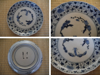 古伊万里染付花唐草文の六寸皿です。 1客はアマテで地貫入が見られ(画像参照) 残り4客にもフリコミやカマキズなどはありますが 上がりも良く使用傷なく大変美しい完品5客組です。 径 18.5㎝ 在庫なし