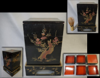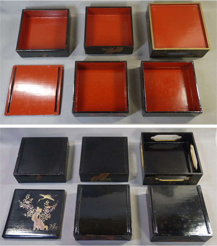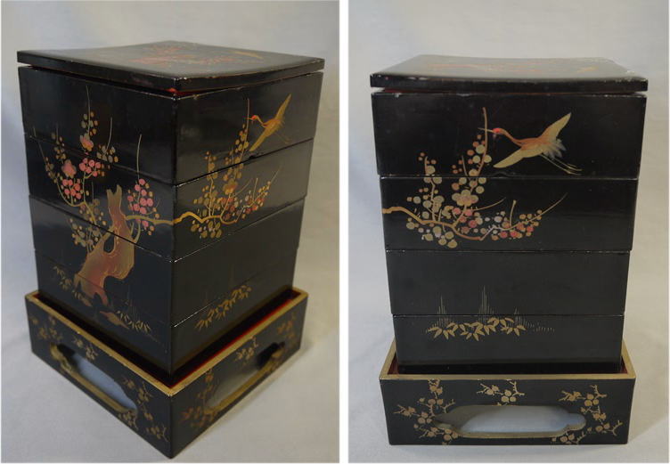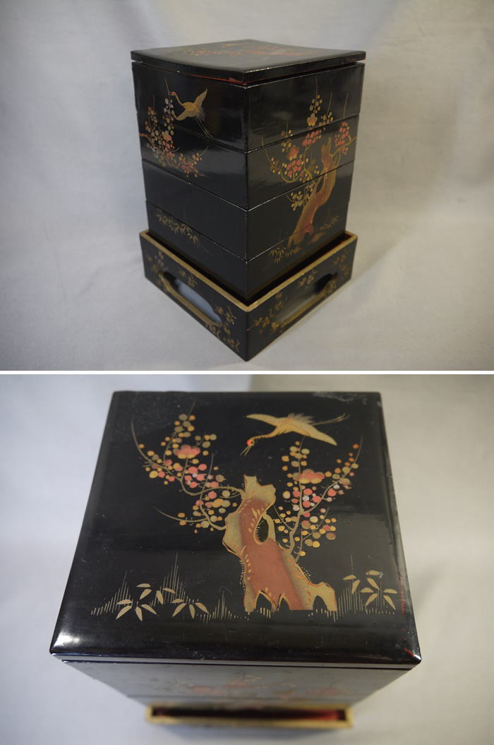 雛道具 木製本漆塗 四段重箱 台付