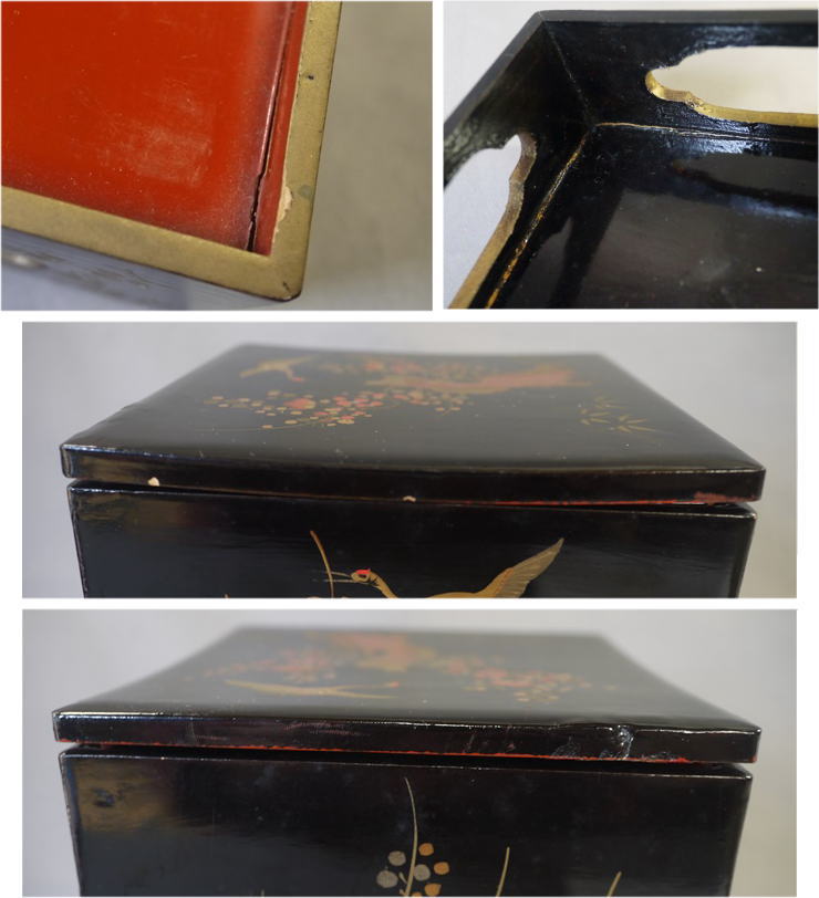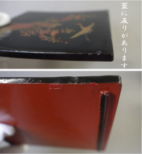 全体的に漆のアタリ・ハガレ・ヒビ割れ等の傷があります(画像参照)。