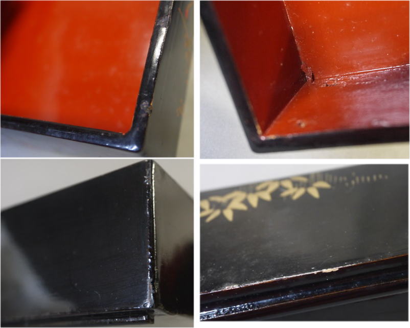 (黒漆を塗って目立たなく修理した箇所もあります、