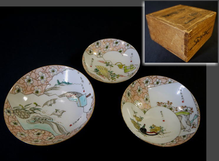 各地の玉川という名称の地名を描いた大・中・小「三ツ組盃」です。