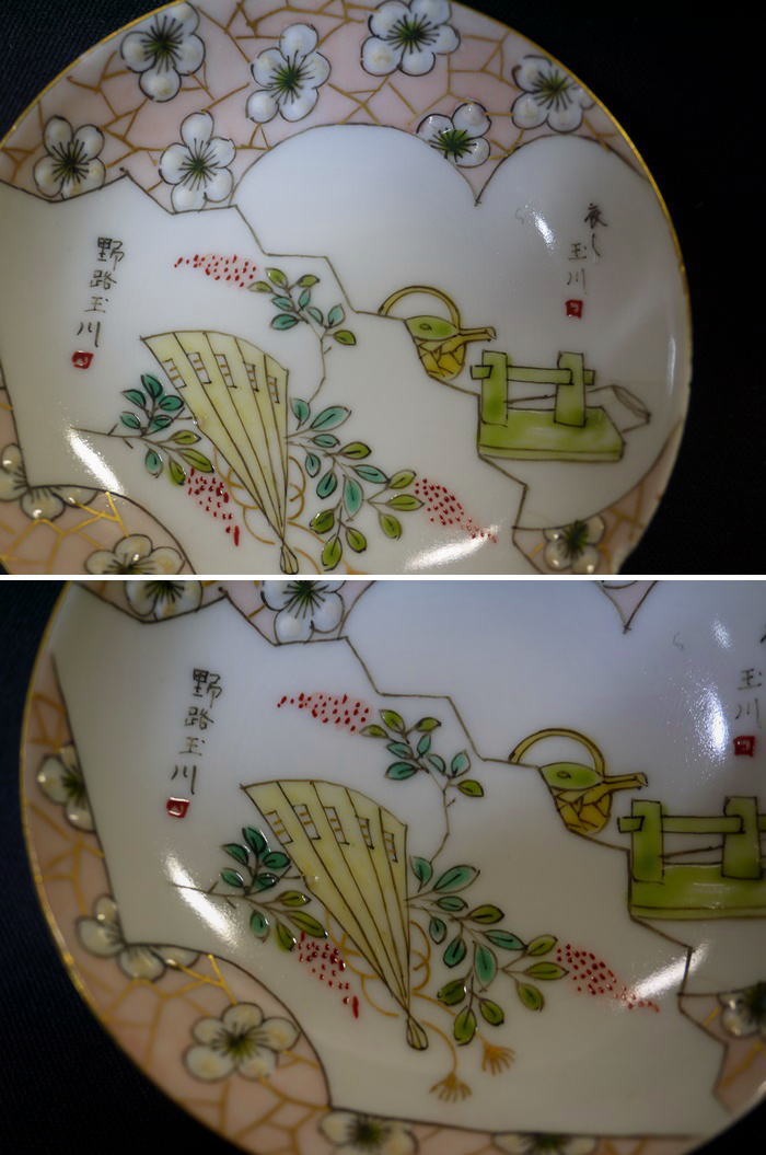 大の盃には「高野玉川」「千鳥玉川」と波千鳥、傘の文様