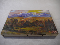 熊本の洋画家 城武信作 裏に1973年(昭和48年) 1月5日 午前の阿蘇山 済々黌 城武信先生 とあります。 左上隅に絵具の剥がれ有(画像参照) 額は傷や隙間、金具の錆・劣化などがあり経年感があります。 作品サイズ 横22.5cm 縦15.5cm 額サイズ 横39.5cm 縦32.5cm 在庫なし