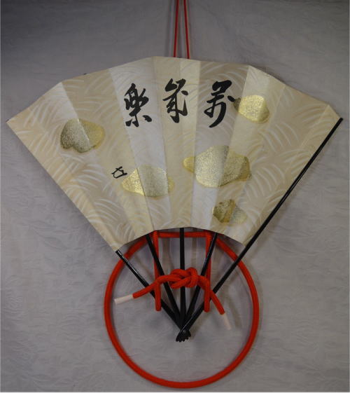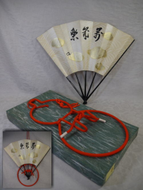 茶道具 表千家14代而妙斎 大型飾り扇と扇掛のセット 組紐瓢型扇子掛朱色 紙箱 s-1071
