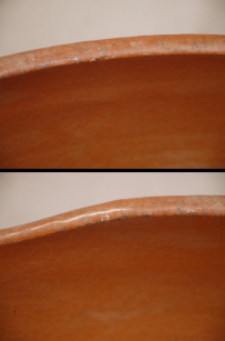 茶道具 炉用灰器 赤楽 吉向 中古品につき微細な傷や使用感はございますが 欠けやニュウ等の目立つような傷はなく お稽古にはまだ十分お使い頂けるコンディションです。 (底裏の三つの脚にソゲや剥がれなどの小傷があります、画像参照) 径28cm H11cm 箱は有りません。 在庫なし