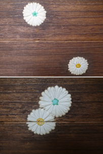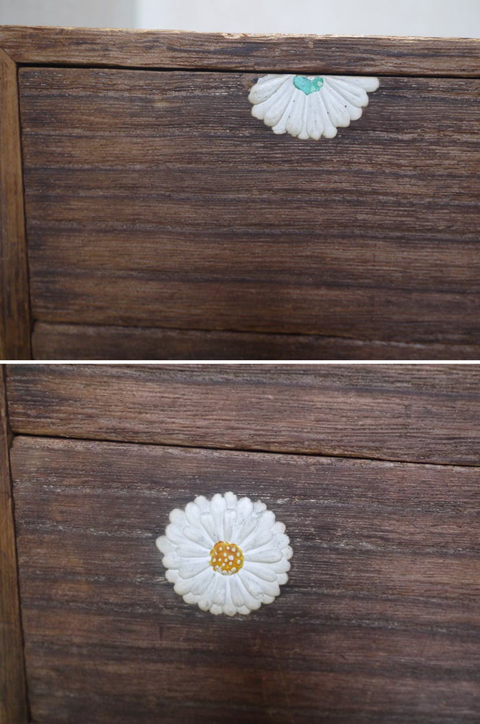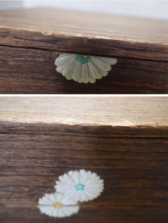 古いものなので菊花弁の胡粉に汚れ剥がれ、