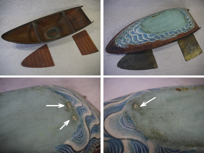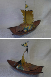 金工細工で作られた宝船、材質は黄銅などの合金と思います。