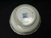 古伊万里染付膾皿1客です。 八ツ割した中に撫子と蝶、遠山流水文が描かれています。 見込みは丁寧な五弁花、底裏銘は二重角渦福のとても上手のお品です。 本金にてカケを2か所補修しております。 形は真円ではなくやや歪みのある円形です。 サイズ 径14㎝ H5cm 在庫なし