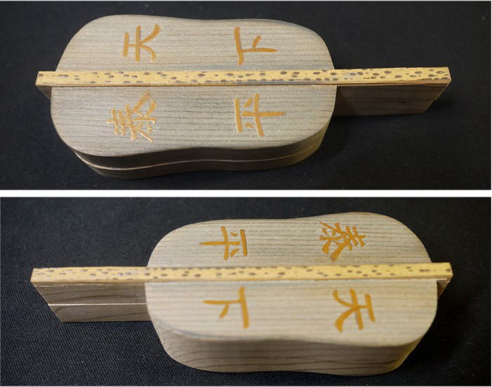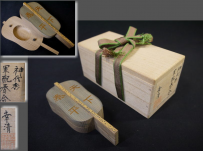 茶道具 香合 神代杉軍配香合 幸清作 木工 「天下泰平」 共箱 中古保管品 s-1075