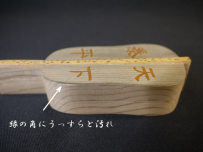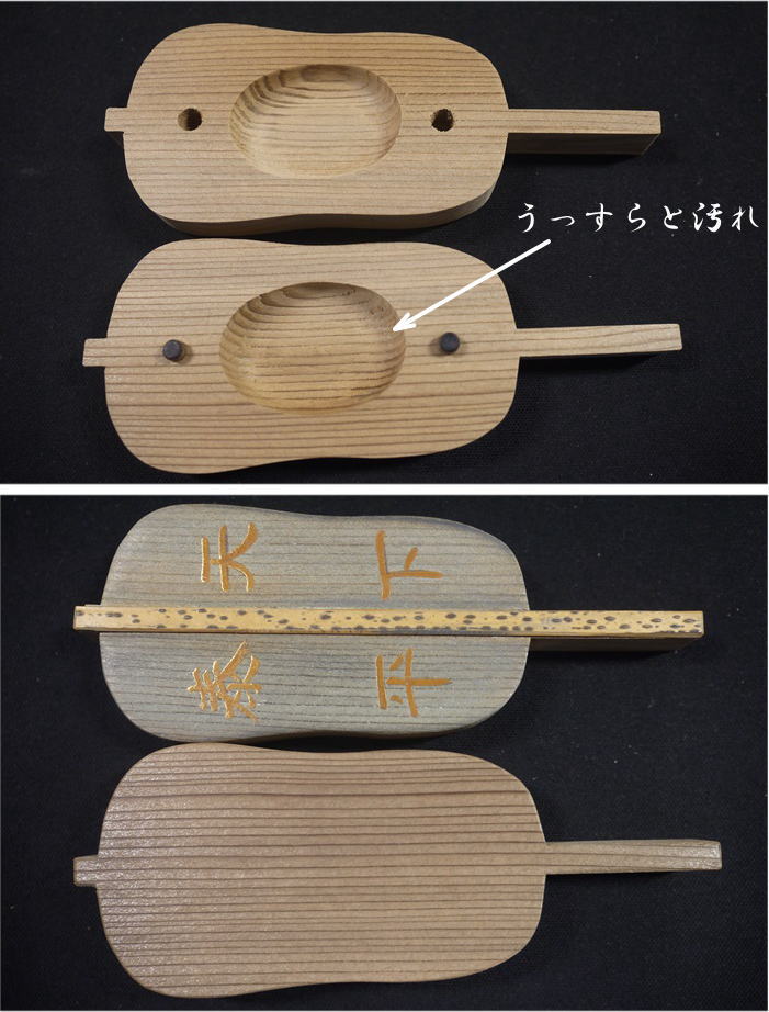 長い年月を経た稀少な材質、美しい杢目で軍配という意匠を表現した素晴らしい作品です。