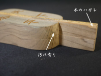 柄の先の方に木の張りが剥がれている箇所がありますが(画像参照)その他には大きな傷みはありません。