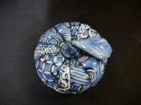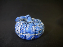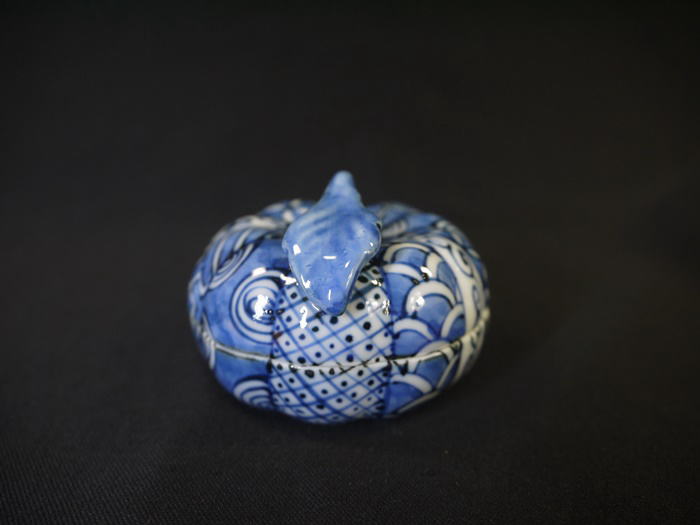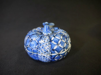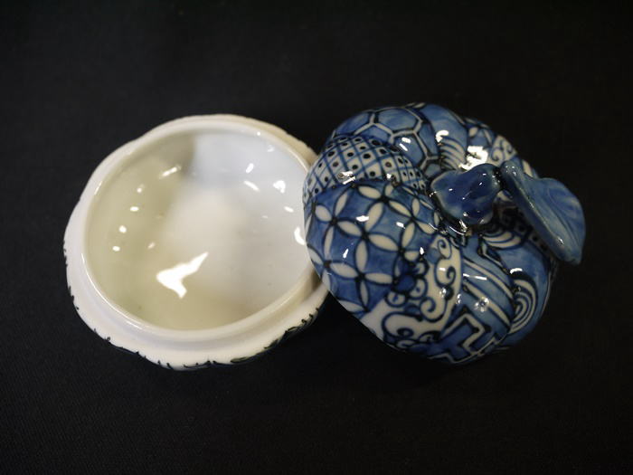 茶道具 染付による精緻な絵付の祥瑞手で 縁起の良い葉付き蜜柑をかたどった香合です。 中古保管品ですが傷汚れなく状態良好な美品です。 共箱入り(箱の底裏にスレ汚れがあります) 径5.8cm 葉までいれた高さ4cm 在庫なし