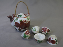 弦の付いた上手急須と湯飲み5客の茶器揃い、