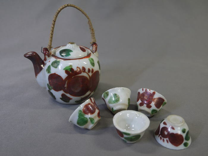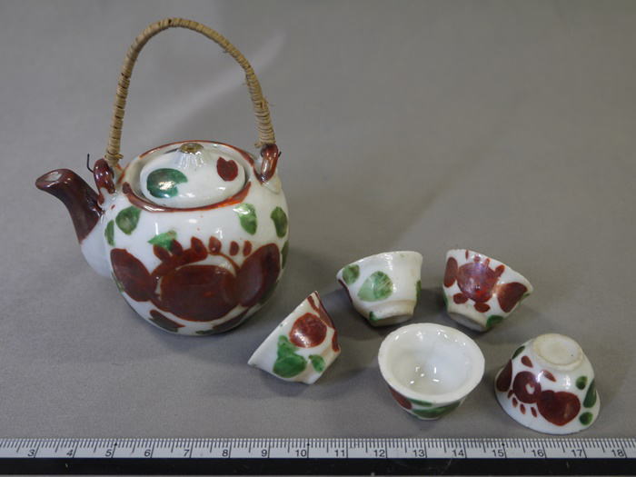 アンティーク ままごと② 雛道具 ミニチュア 上手急須と湯飲 茶器揃 昭和レトロ s-2520