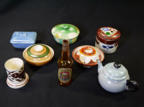 二彩蓋物…ニュウホツレ有り 蓋径6.5cm H4.5cm