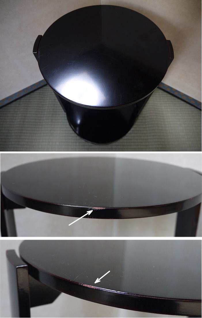 茶道具 鵬雲斎好丸卓 溜塗 棚物 組立式 中古保管品 経年に伴う小傷や漆の剥がれがありますが お稽古にはまだ十分お使い頂けると存じます。 紙共箱入り 径29.7cm H41cm 新着商品1800円