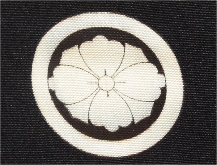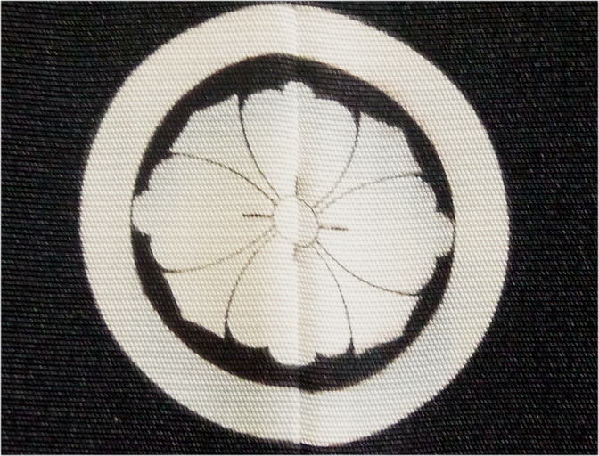 男物 正絹 袷 黒紋付の着物 丸に剣花菱の五ツ紋