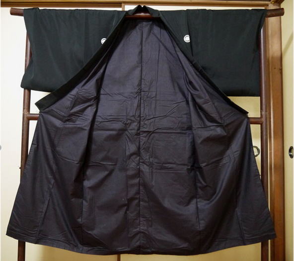 男物 正絹 袷 黒紋付の着物 正装 五ツ紋 丸に剣花菱 状態良好美品 n-155