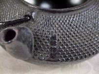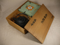 南部鉄器 盛栄堂 急須と鍋敷きセット 急須の底にホーローの経年変化があります。 長期保管品でおそらく未使用もしくはそれに近い状態だと思います。 扇形の鍋敷きはビニールに入ったままの未使用品です。 実際に測ってはいませんが同サイズの急須の容量は約0.3リットルです。 高さ12cm 最大胴径12cm 在庫なし