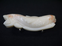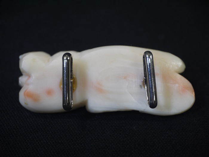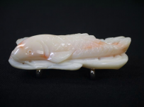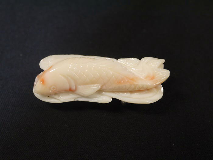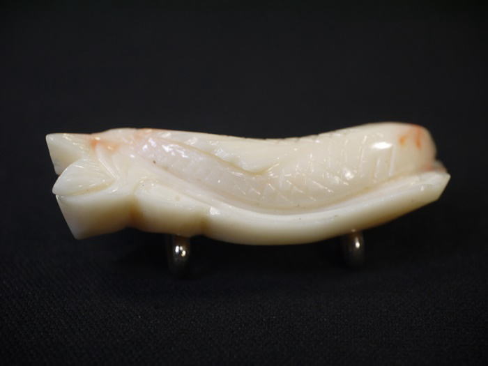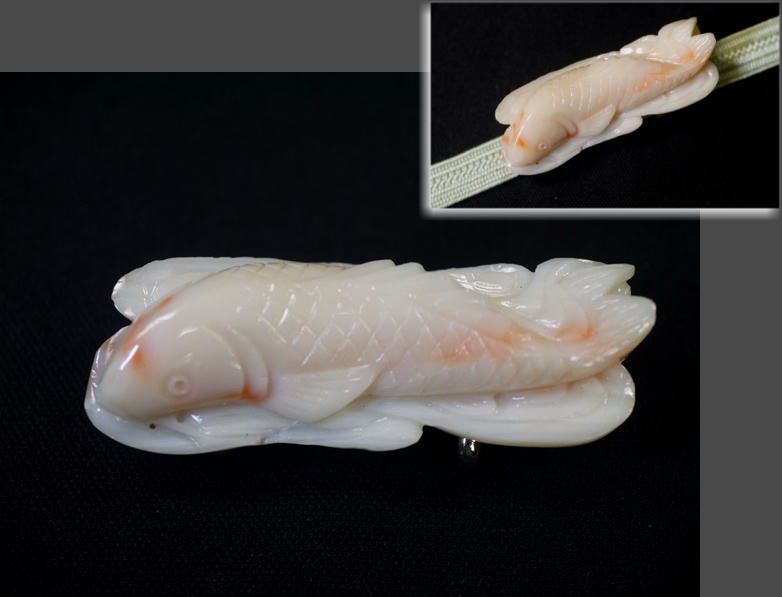 アンティーク 帯留 白珊瑚 爽やかな鯉 白地にピンク 4.5cm s-1105