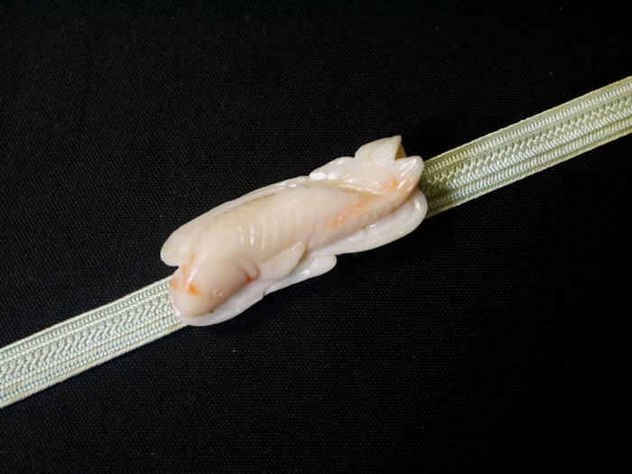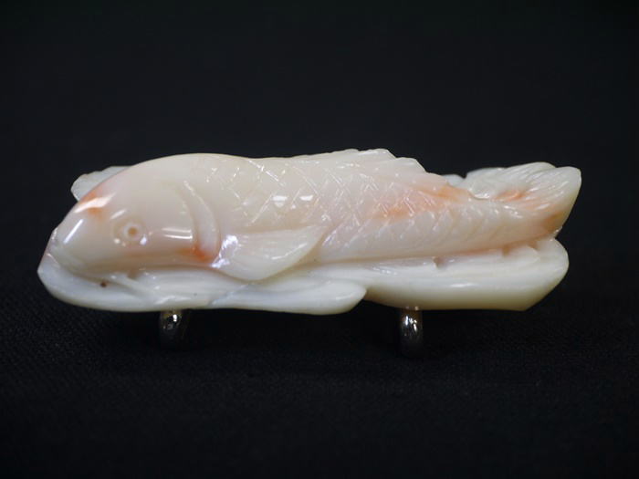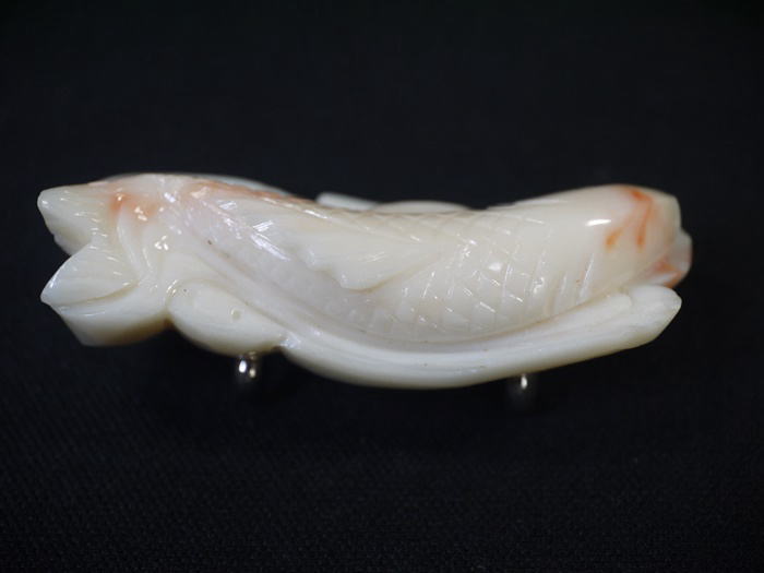 白珊瑚にところどころ淡いピンクが入った爽やかな色合いで鯉をかたどっています。