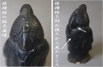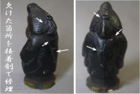全体的に欠けやワレ修理跡(特に後ろ姿)等が多々見られます。