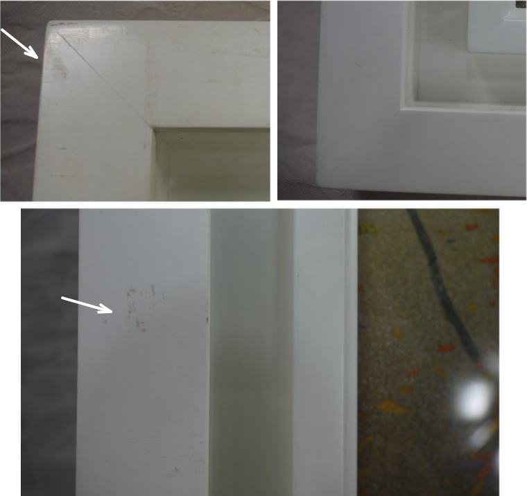 左下角に3ミリほどの剥がれがありますが(矢印参照)