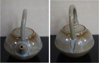 煎茶道具 桂山造 湯瓶 底裏に白っぽいスレのような跡が見られますが その他には傷・汚れ・使用感なく状態良好な美品です。 箱は有りません。 口の先までの最大胴径15cm 口径6.5cm 取っ手まで入れた高さ16cm 最後の画像は瓶掛け(別出品)に掛けたイメージ画像で 出品は湯瓶のみです。 在庫なし