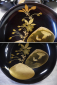 表から見ると漆黒の地に源氏香が描かれた雅でシンプルな椀ですが