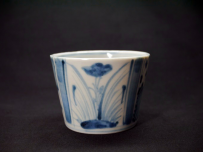 古伊万里染付蕎麦猪口 水仙に斜め格子四方襷市松文です。 見込みは崩して描いていますが帆掛け舟、 底は蛇の目凹形 天明期のものと思います。 口縁にごく浅い微ソゲと高台に釉の掛かったカマキズがあります。 口径 7.7cm H5.5cm 在庫なし