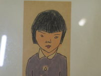 短冊のような縦長い画面におかっぱ頭の女の子を描いています。