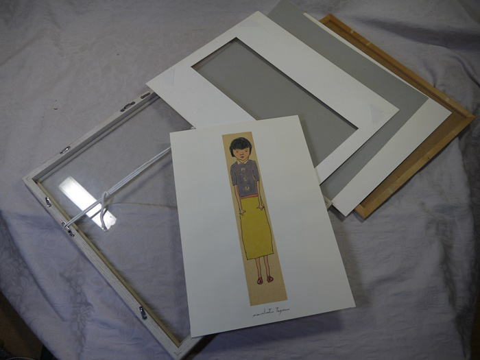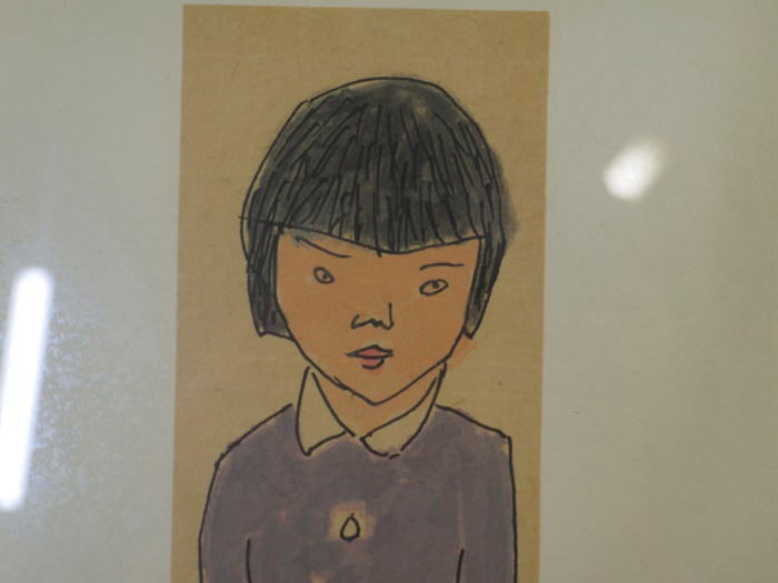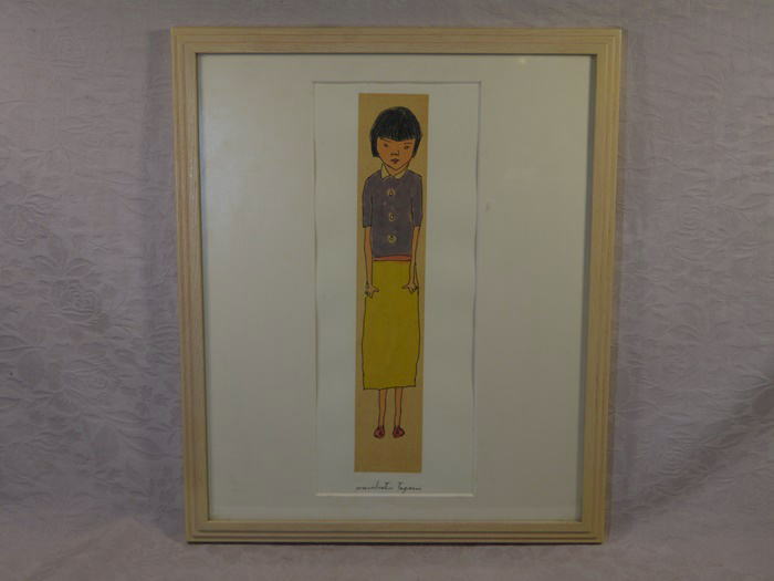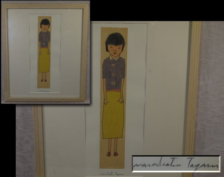 田上允克 水彩画 女の子 おかっぱ頭 縦33cm 横6cm 額サイズ 44cm×37cm