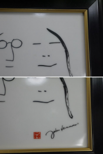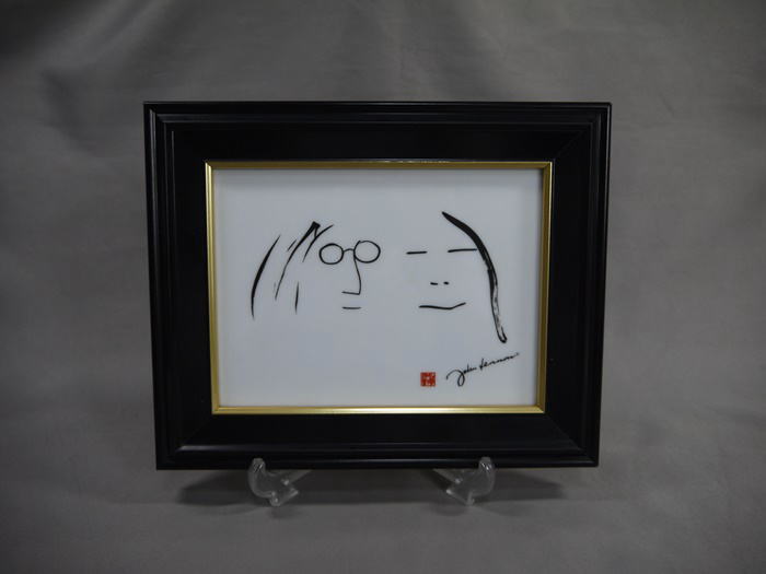 ビートルズ ジョンレノンとオノヨーコが描かれた陶板の額アート作品です。