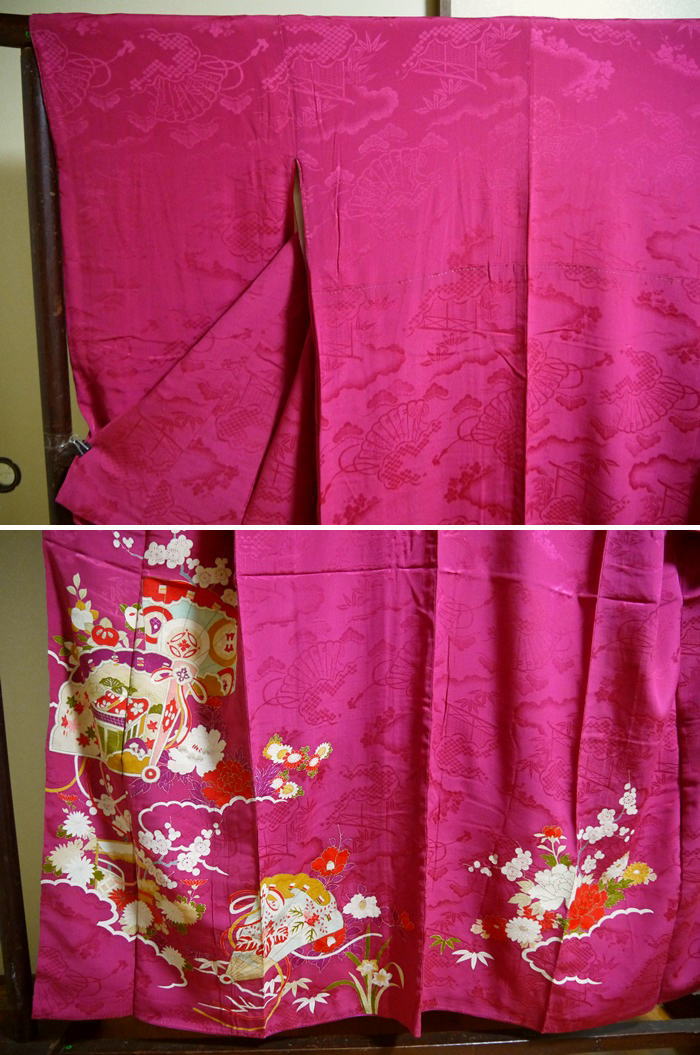 長期保管のアンティーク着物ですが襟にうっすら汚れが見られる以外は(9枚目画像参照)