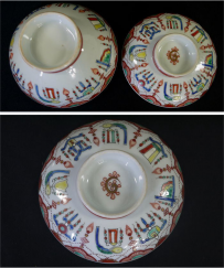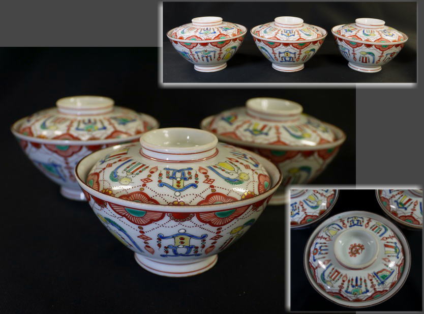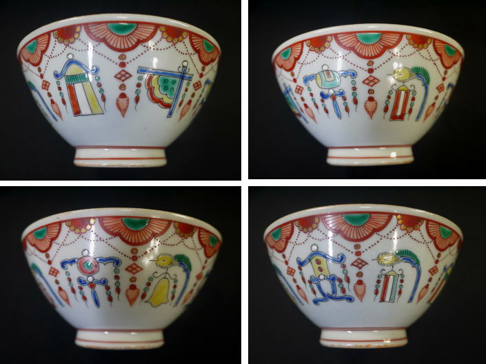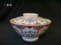 明るく華やかな色彩で8種類の瓔珞文を蓋と身に描いたとても美しい茶碗です。
