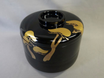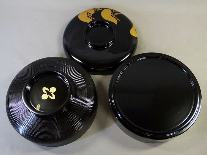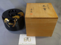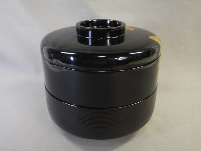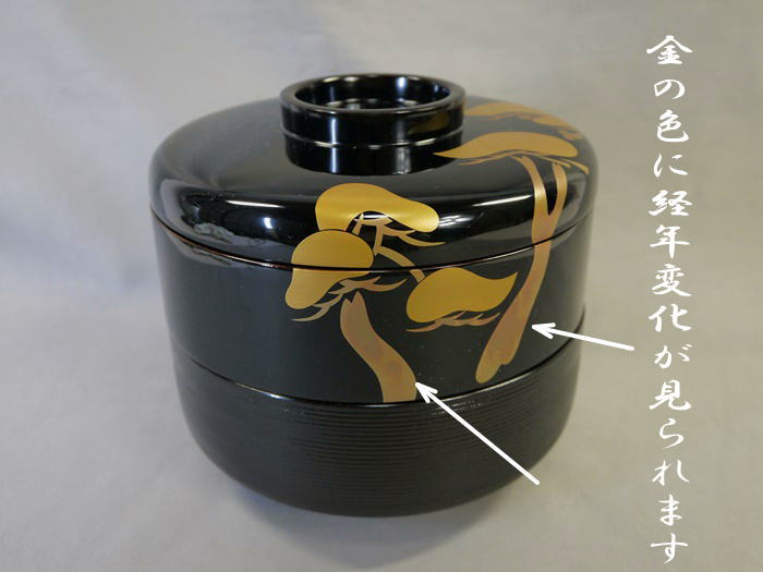 平安象彦作 光琳 松蒔絵 二段の丸重です。 艶やかな黒漆に金蒔絵で縁起良い松が描かれ 下の段は美しい千筋細工となっております。 スレ等の傷なく未使用保管品と思いますが 金蒔絵の金の色にやや経年変化が見られます。 お一人からお二人用のお節料理に、また菓子器などにお使い頂ければと存じます。 サイズ 全体の高さ16.5cm 径15.5cm 上の段の高さ5.2cm 下の段の高さ7.4cm 新着商品3500円